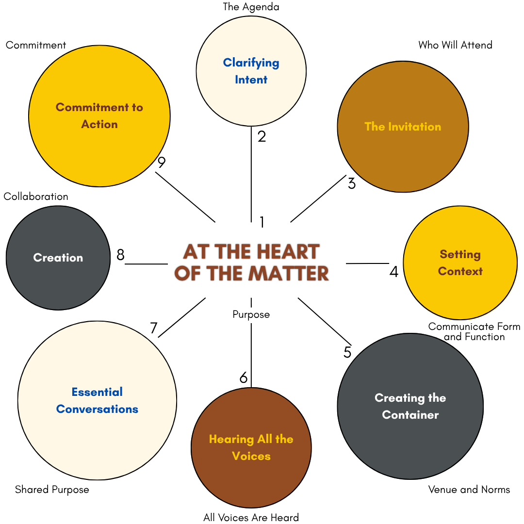 The Art of Convening® is a set of transformative skills and practices — grounded in The Convening Wheel and integrating time-honored wisdom with modern leadership — that help you design and lead gatherings where trust can grow, real dialogue can emerge, and people leave feeling committed to an aligned way forward.