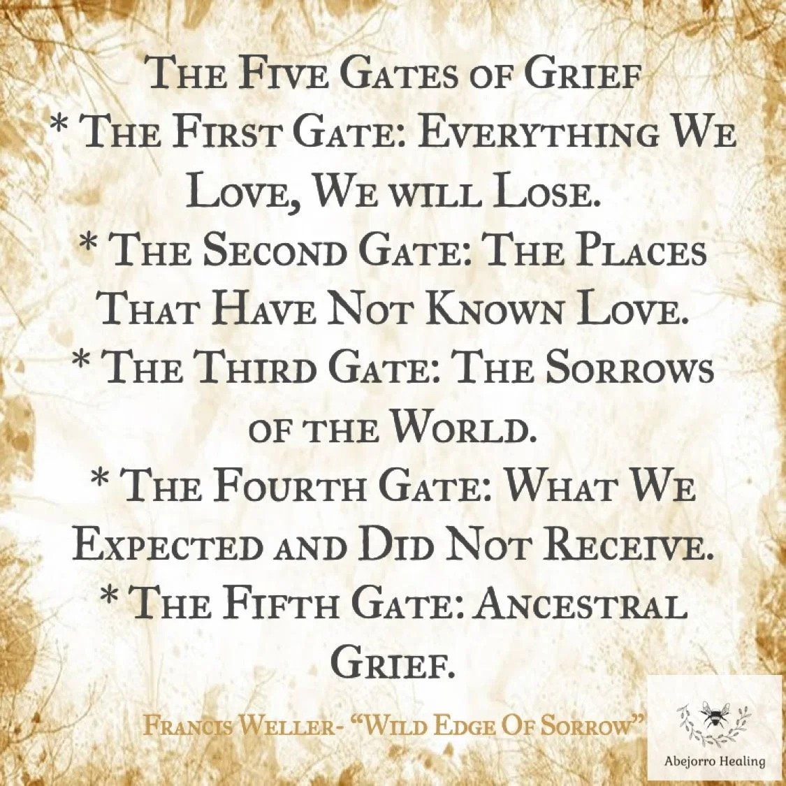 “Grief is more than an emotion; it is also a faculty of being human. It is a skill that must be developed, or we will find ourselves migrating to the margins of our lives in hopes of avoiding the inevitable entanglements with loss. It is through the rites of grief that we are ripened as human beings. Grief invites gravity and depth into our world. We possess the profound capacity to metabolize sorrow into something medicinal for our soul and the soul of the community.” - By Francis Weller, An Apprenticeship with Sorrow