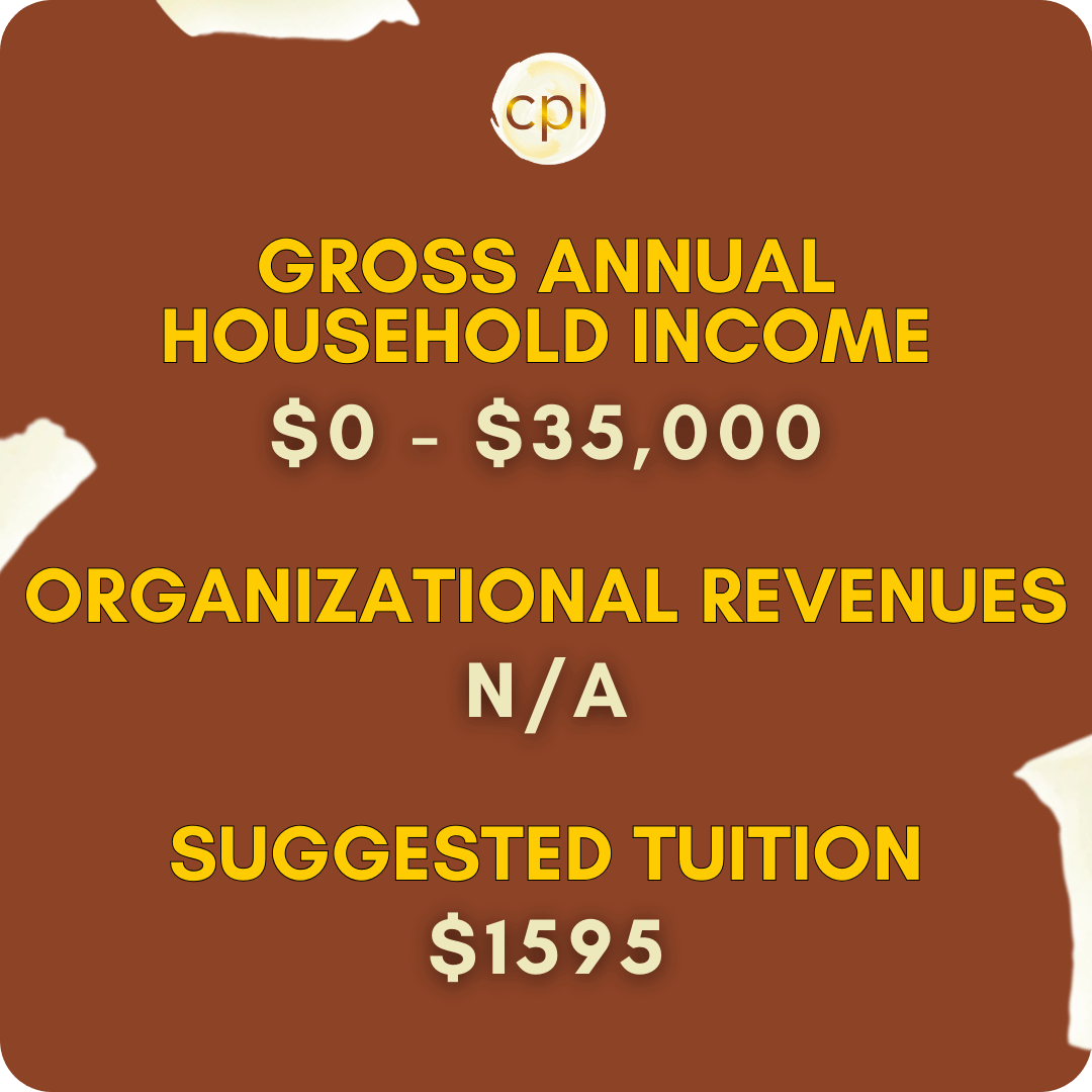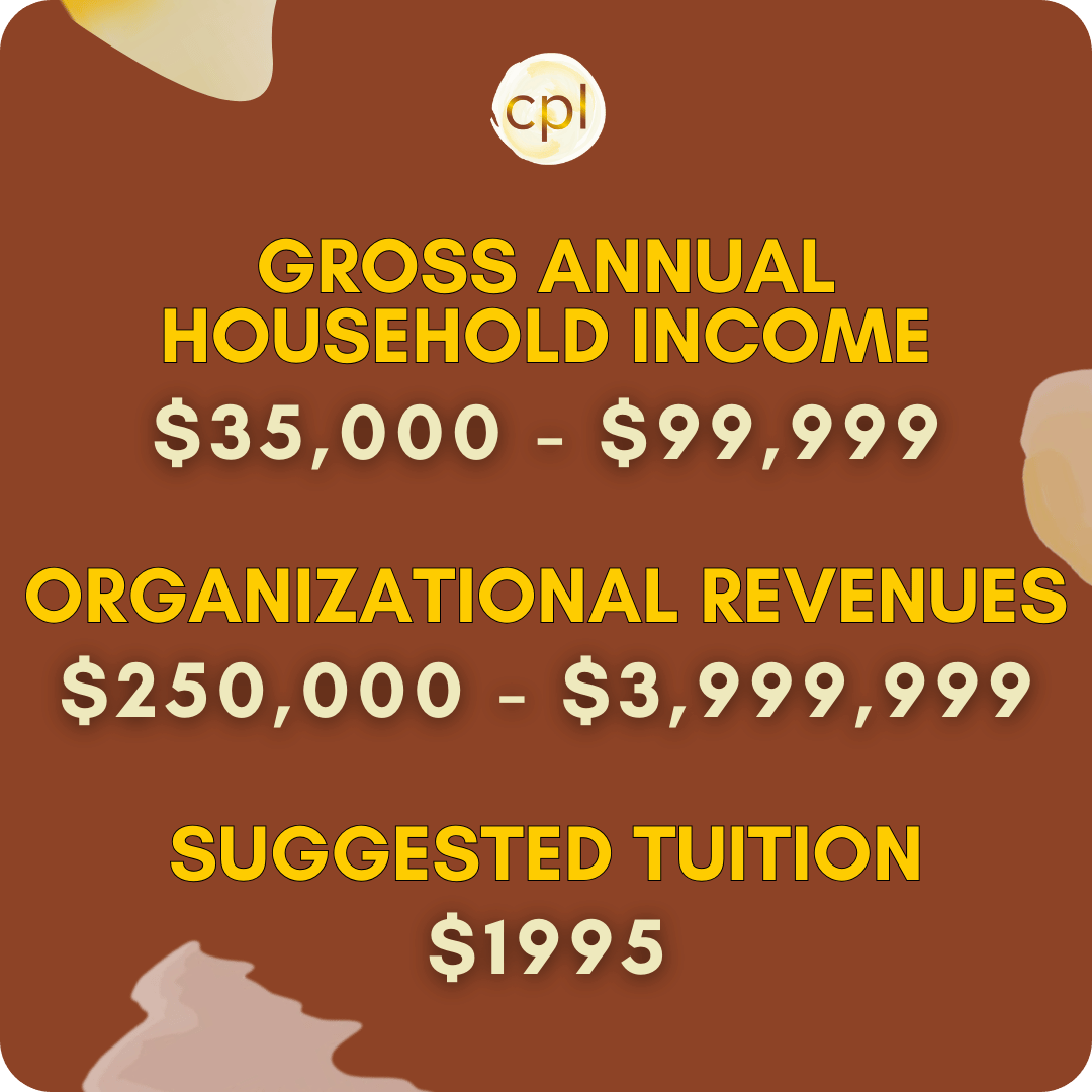 In keeping with our vision: A just, inclusive, and interconnected world — a world that works for all, we have designed a “tiered tuition” (sliding scale) model that empowers individuals to pay at a level that is authentic and appropriate to their current circumstances. We offer a group registration rate for 3 (or more) individuals registering together. We also provide tuition assistance options: including a no-interest payment plan and a limited number of scholarships.